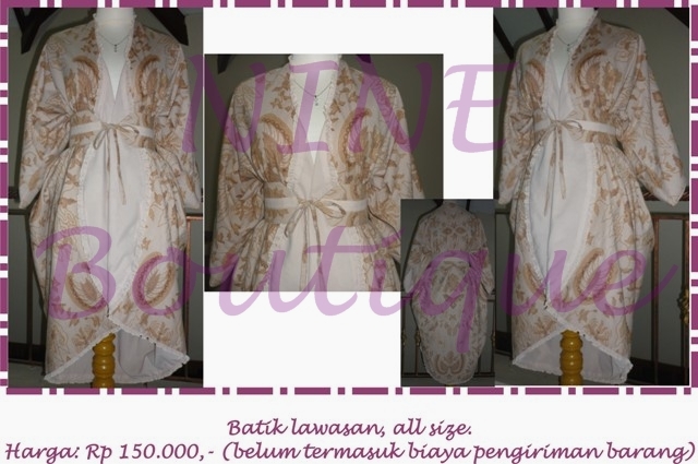 Sejak dari dulu saya suka membuat model pakaian sendiri. Belanja kain sendiri dan pergi ke penjahit, mengungkapkan segala keinginan (maksudnya pengen model pakean kayak apa). Suka sering kepikiran, ingin punya butik sendiri untuk mencurahkan segala inspirasi dan bisa bebas berkreasi. Dan (Alhamdulillah) akhirnya sekarang saya bisa benar-benar bebas berekspresi dan berkreasi dalam berbusana. NINE Boutique sekarang ada untukku dan ada untuk Anda, teman-teman di luar sana yang mungkin memiliki selera yang sama dengan saya. Tema yang lagi hot saat ini adalah big bolero yang cantik, yang kebetulan motif nya baru ada batik saja. Nah, ini nih karya saya: